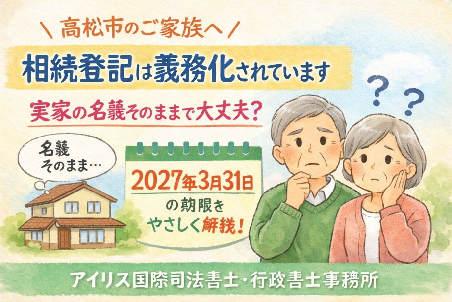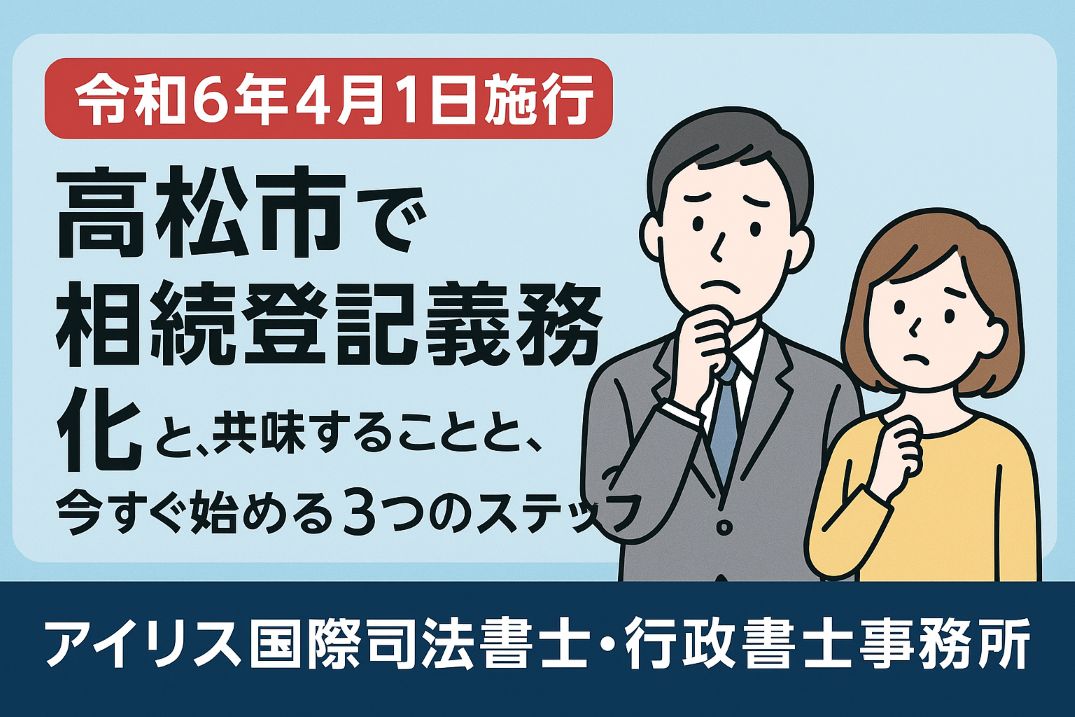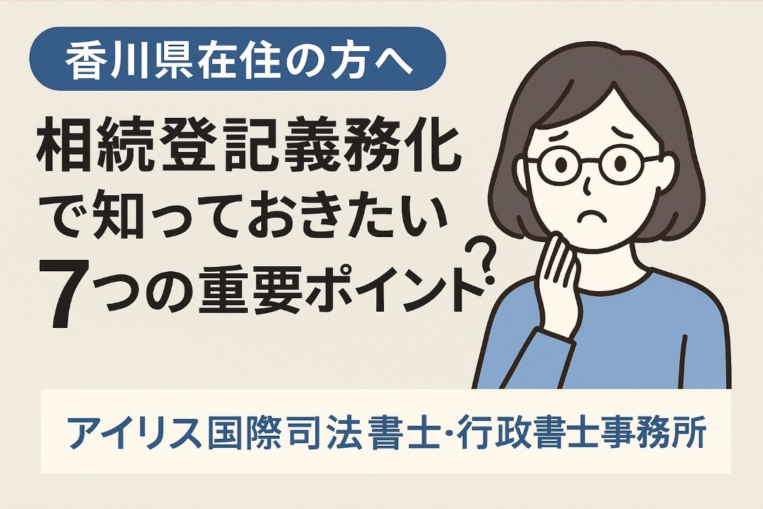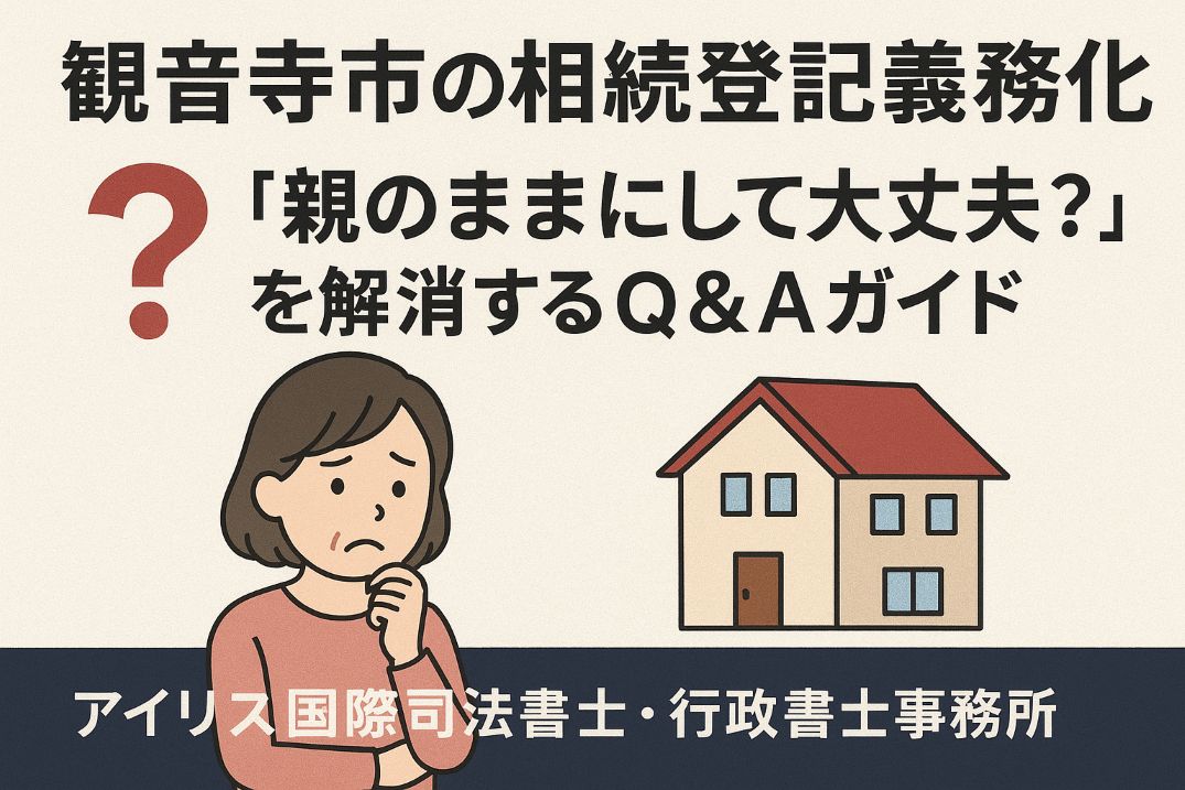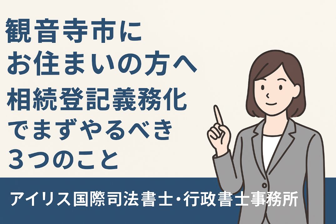 令和6年4月から「相続登記」が義務化され、観音寺市の土地や建物を相続した場合、3年以内の登記が必須となりました。放置すれば過料(罰則)のリスクも。この記事では、観音寺市在住の方向けに、必要書類・管轄法務局・空き家対策など7つの重要ポイントを司法書士が解説します。