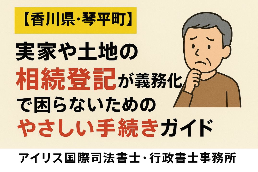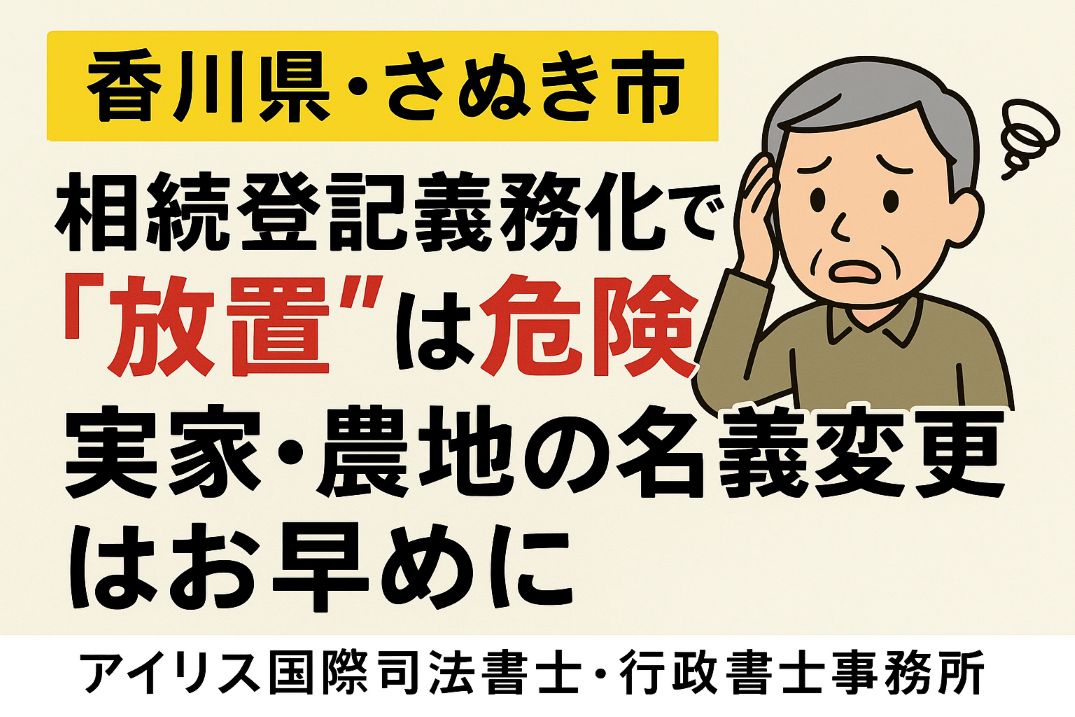2024年4月から相続登記が義務化され、香川県内でも土地や建物を相続した場合、3年以内に登記を行わなければなりません。綾川町のように実家や農地を持つ方にとって、放置は過料のリスクや空き家問題につながります。本記事では香川県内在住者向けに、相続登記義務化の内容、必要な手続き、放置リスクを司法書士がわかりやすく解説します。