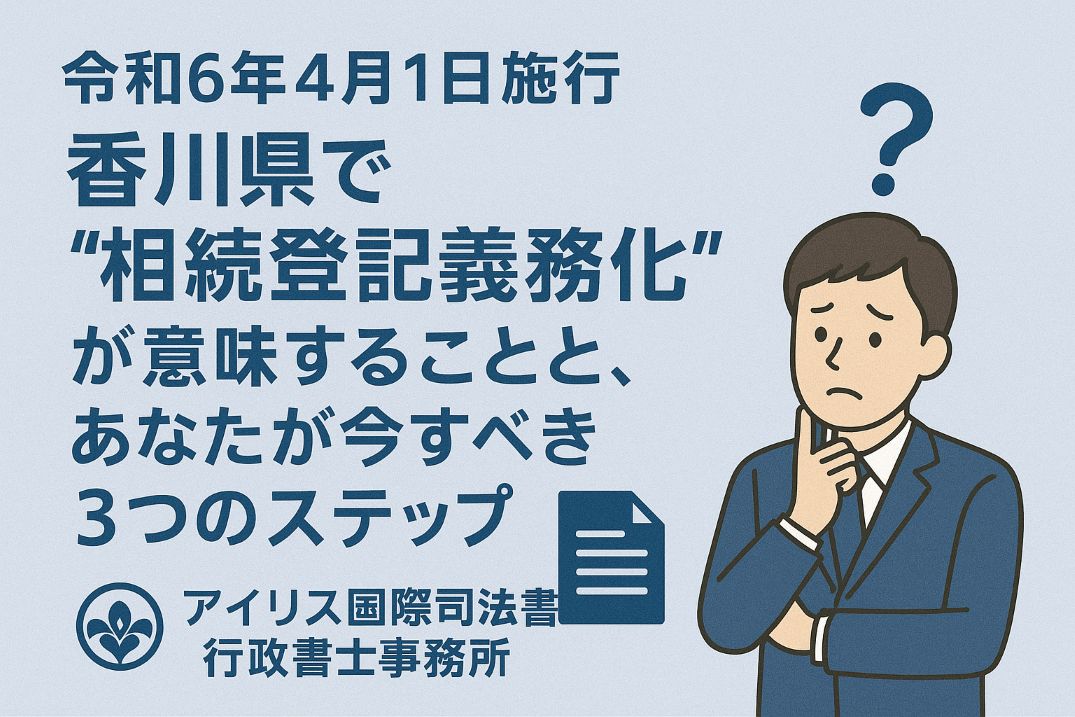 2024年4月1日(令和6年)から、相続で取得した不動産の「相続登記申請」が義務化されました。香川県・高松市を含む地域でも、3年以内の申請を怠ると過料の対象になる可能性があります。本記事では、制度の背景と香川県での実務的注意点、そして今すぐ始めたい3つの行動ステップを司法書士の視点で詳しく解説します。