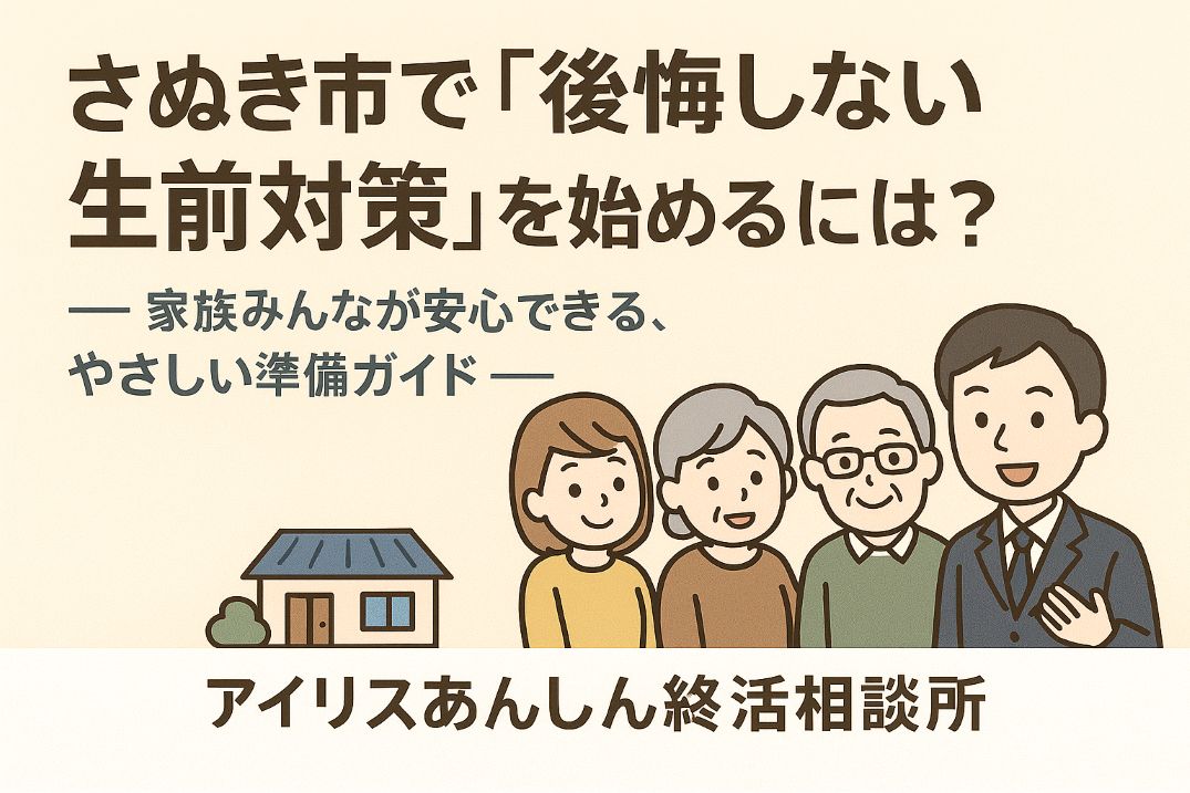 さぬき市で「これからの暮らし」や「実家のこと」が気になり始めた方へ。生前対策とは、元気なうちに家族で話し合い、将来の不安を一つずつ安心に変えていく準備です。実家・土地・お金の管理、認知症の心配など、さぬき市でよくあるお悩みをわかりやすく整理し、誰でも今日から始められる生前対策をご紹介します。