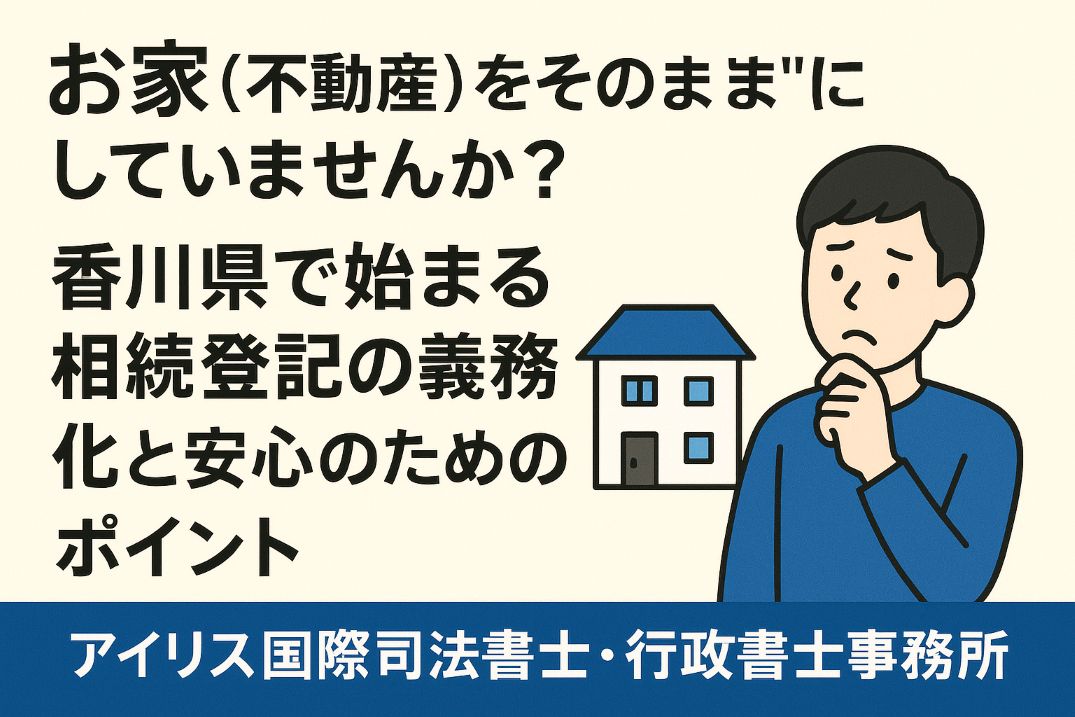 香川県に実家がある県外在住の方へ。2024年から相続登記が義務化され、怠ると過料の可能性があります。相続放置による空き家問題を防ぐため、香川県の相続事情と手続きを司法書士が解説します。