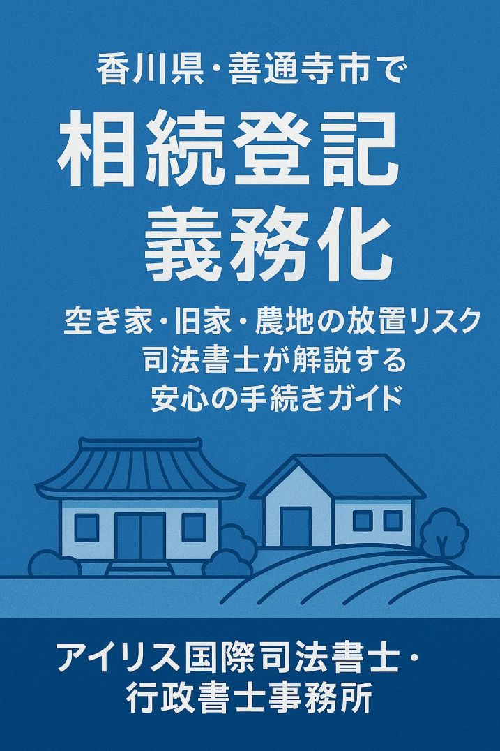 2024年4月から相続登記が義務化され、善通寺市でも不動産の名義変更を3年以内に行わないと10万円以下の過料対象となります。旧家や空き家、農地を放置すると管理責任や税負担のリスクも。司法書士が地域事情に即した対策を解説します。