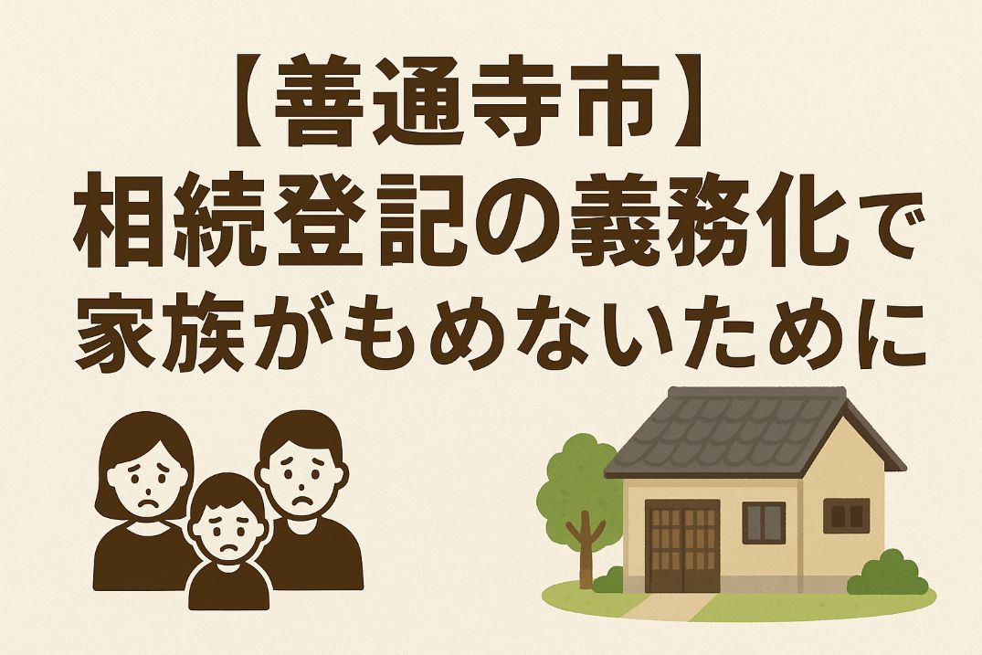 「相続登記の義務化」は、単なる法律改正ではなく"家族の関係"を守る制度です。登記を放置すると名義が複雑化し、親族間トラブルや空き家問題につながります。この記事では、善通寺市で増えている相続トラブルの傾向や、もめないための具体的な対策を司法書士がわかりやすく解説します。